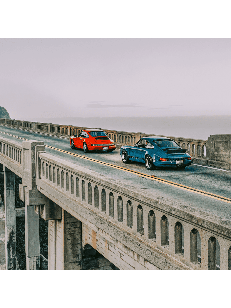 For the 6th Signature Series Poster, Vanishing Point was shot just north of Big Sur while making our way down south for my Food Rally. Chris was kind enough to fly me out to be apart of the excursion and I cannot begin to describe the great times we had. We woke up before the sun broke and by the time we got to the bridge, the soft morning light hit and nearly took my breath away. The moment forever captured in this photo of Chris and Quan heading towards Big Sur.
